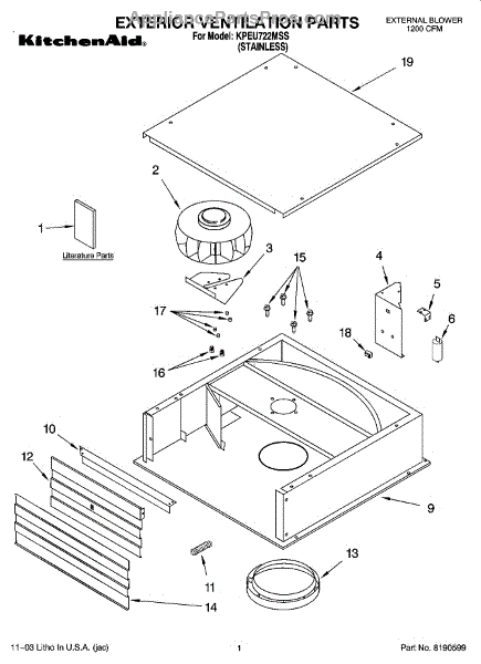 Parts for Kitchenaid KPEU722MSS: 01 - Exterior Ventilation Parts