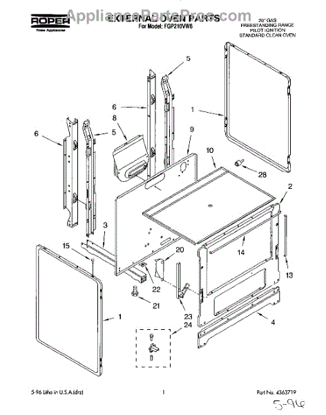 Parts for Roper FGP210VW6: 01 - External Oven Parts