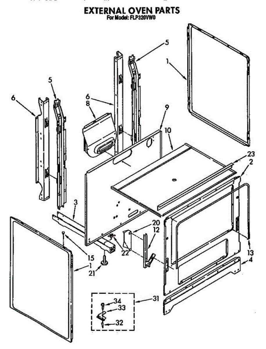 Parts for Roper FGP320VN0: External Oven Parts