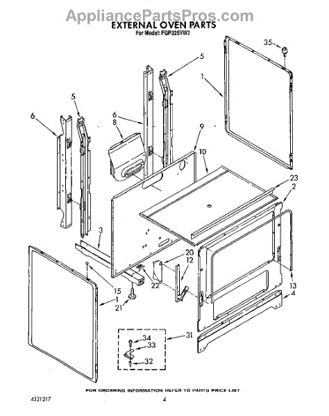 Parts for Roper FGP325VW2: 03 - External Oven Parts