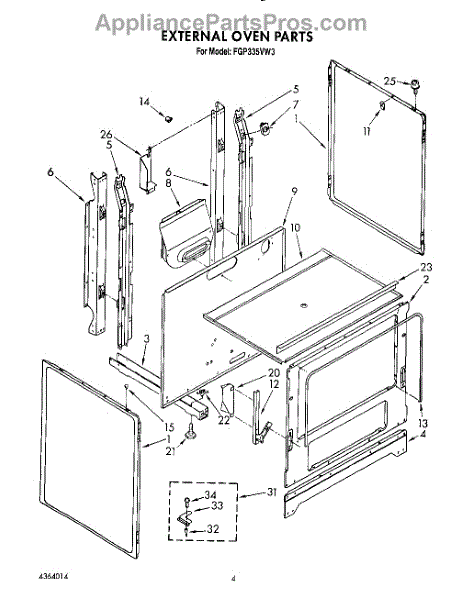 Parts for Roper FGP335VW3: 04 - External Oven Parts