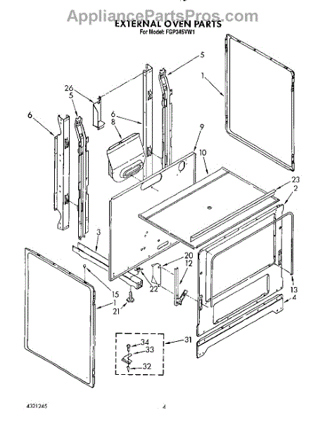 Parts for Roper FGP345VW1: 04 - External Oven Parts