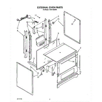 Parts for Whirlpool 1SF014BEW0: 02 - External Oven Parts