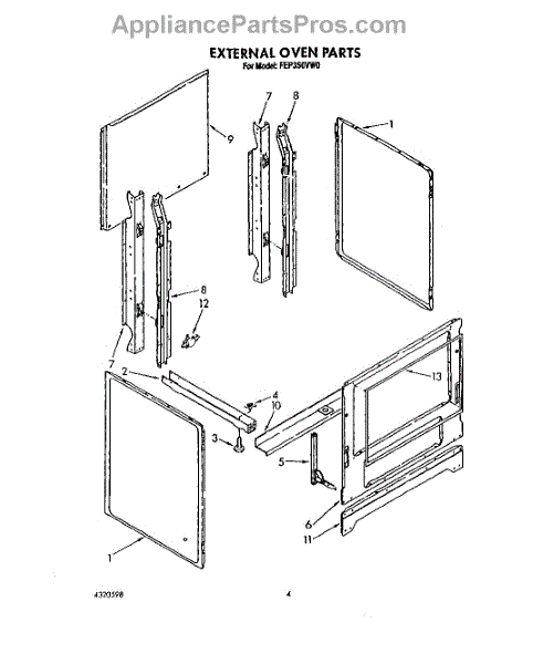 Parts for Whirlpool FEP350VL0: 03 - External Oven Parts