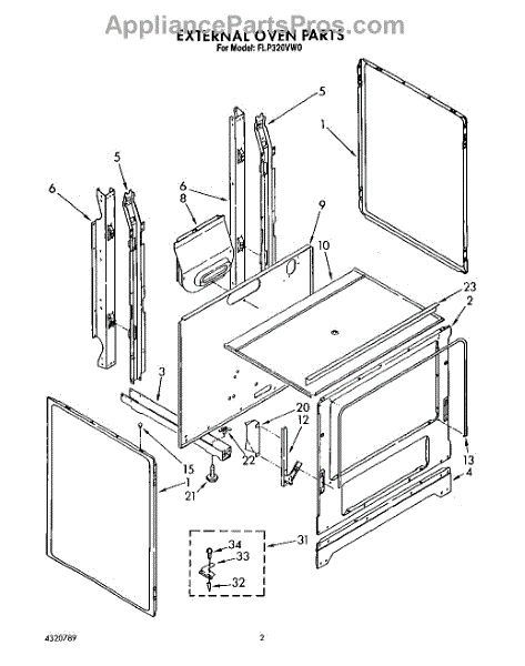 Parts for Whirlpool FLP320VL0: 02 - External Oven Parts