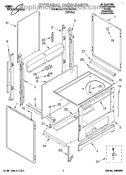 Parts for Whirlpool RF0100XRN8: 01 - External Oven, Lit / Optional Parts