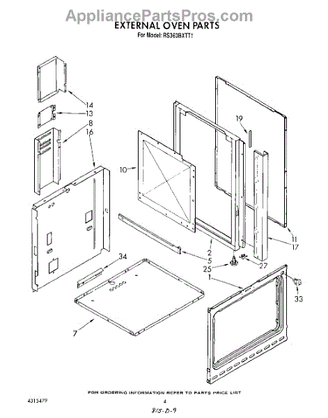 Parts for Whirlpool RS363BXTT1: 03 - External Oven Parts