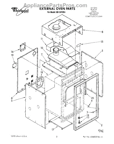 Parts for Whirlpool SB130PER4: 01 - External Oven Parts