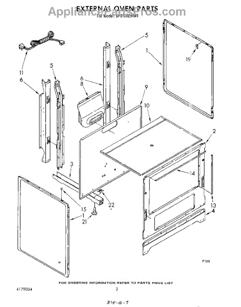 Parts for Whirlpool SF0100ERW0: 02 - External Oven Parts