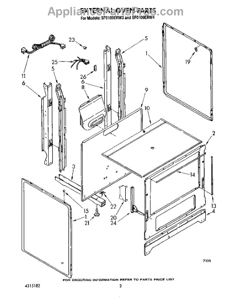 Parts for Whirlpool SF0100ERW4: 02 - External Oven Parts
