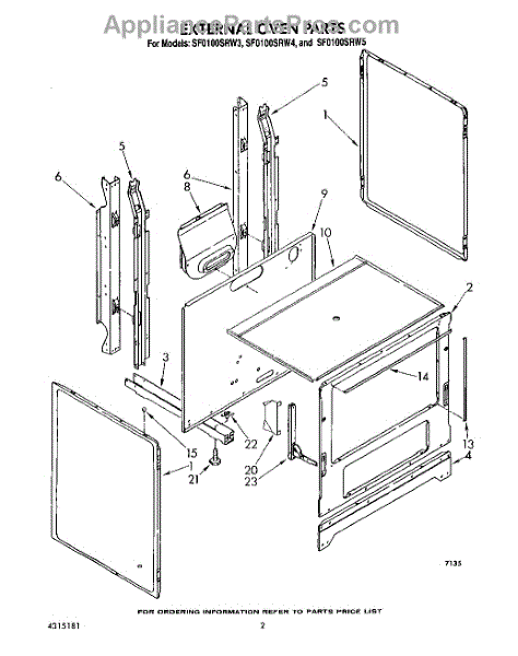 Parts for Whirlpool SF0100SRW5: 02 - External Oven Parts