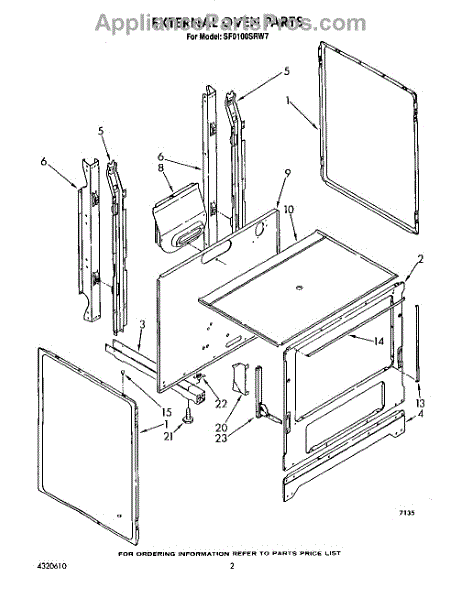 Parts for Whirlpool SF0100SRW7: 02 - External Oven Parts
