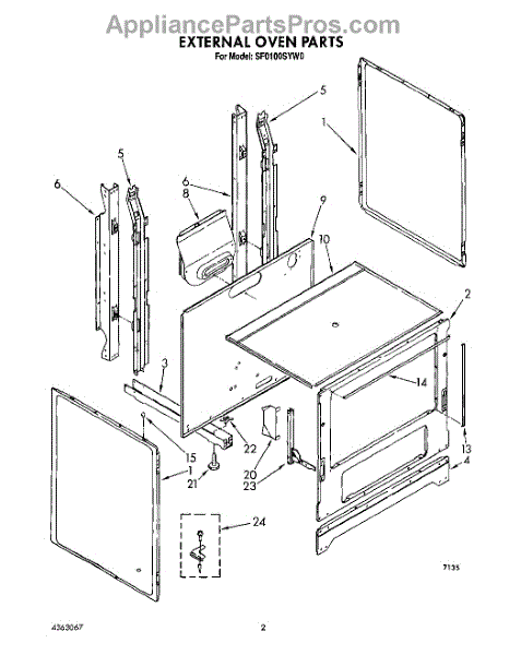 Parts for Whirlpool SF0100SYN0: 02 - External Oven Parts