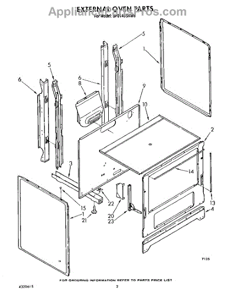 Parts for Whirlpool SF0140SRW6: 02 - External Oven Parts