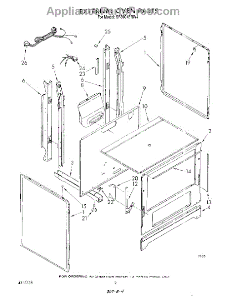 Parts for Whirlpool SF3001ERW4: 02 - External Oven Parts