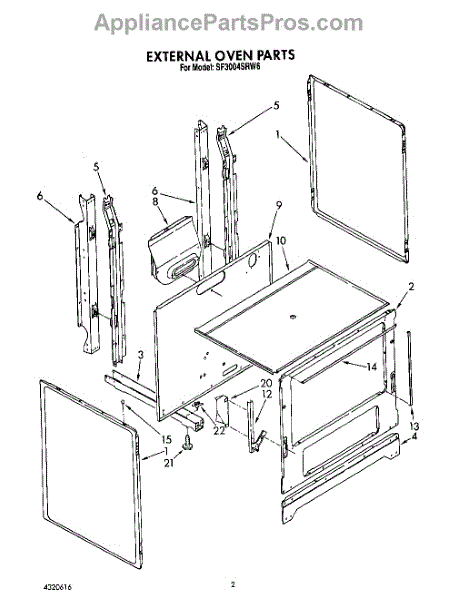 Parts for Whirlpool SF3004SRW6: 02 - External Oven Parts