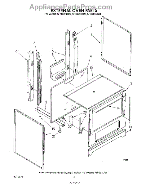 Parts for Whirlpool SF3007SRW2: 02 - External Oven Parts