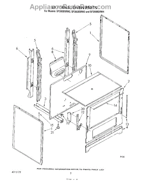 Parts for Whirlpool SF300BSRW3: 02 - External Oven Parts