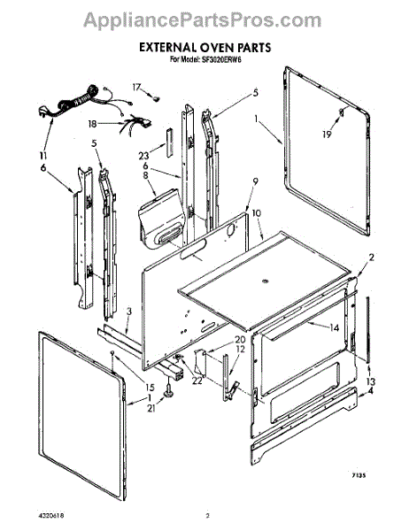 Parts for Whirlpool SF3020ERN6: 02 - External Oven Parts
