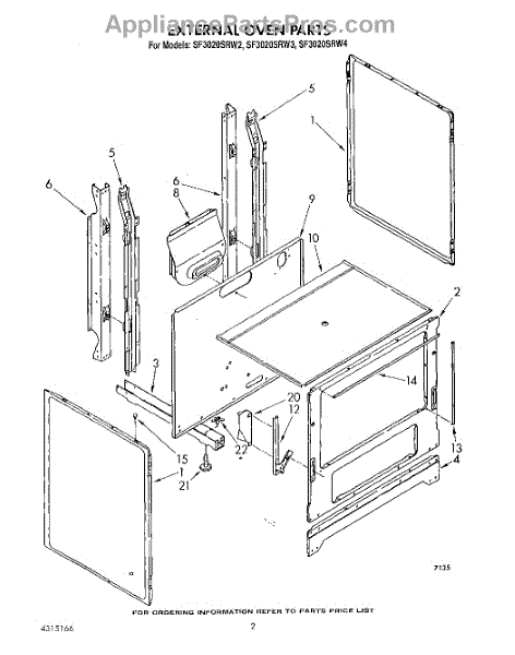 Parts for Whirlpool SF3020SRW3: 02 - External Oven Parts