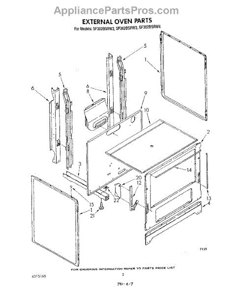 Parts for Whirlpool SF302BSRW4: 02 - External Oven Parts