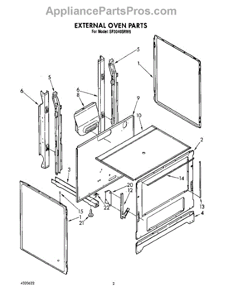 Parts for Whirlpool SF3040SRW6: 02 - External Oven Parts
