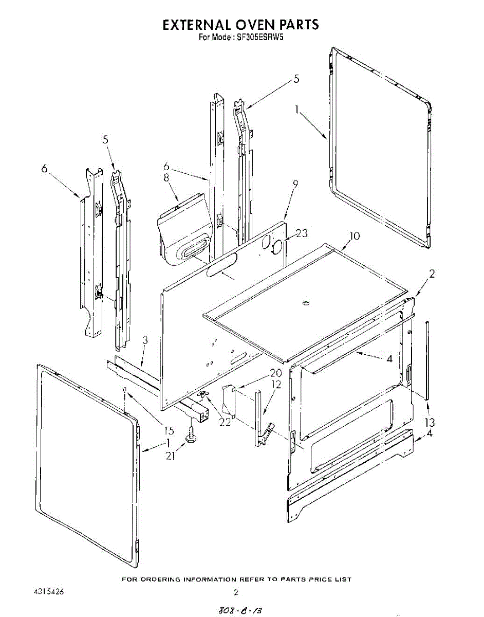 Parts for Whirlpool SF305ESRW5: 02 - External Oven Parts