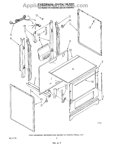 Parts for Whirlpool SF3100ERW2: 02 - External Oven Parts