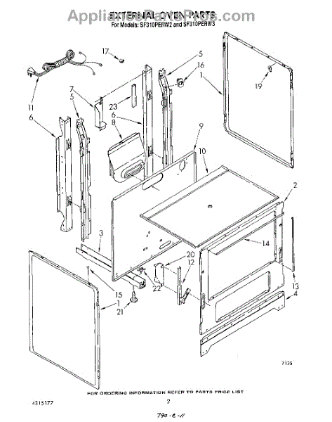 Parts for Whirlpool SF310PERW2: 02 - External Oven Parts