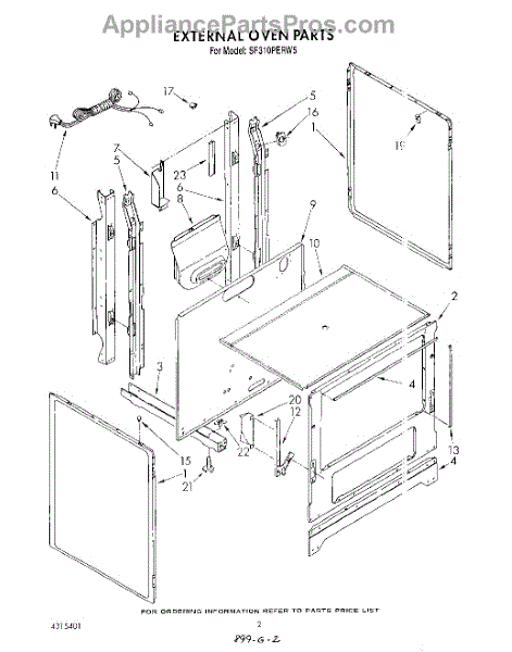 Parts for Whirlpool SF310PERW5: 02 - External Oven Parts