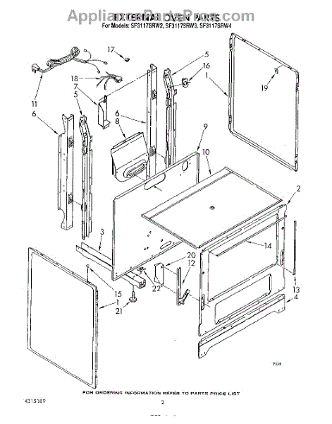 Parts for Whirlpool SF3117SRW3: 02 - External Oven Parts