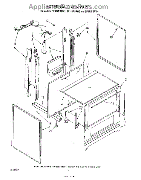 Parts for Whirlpool SF311PSRW3: 02 - External Oven Parts