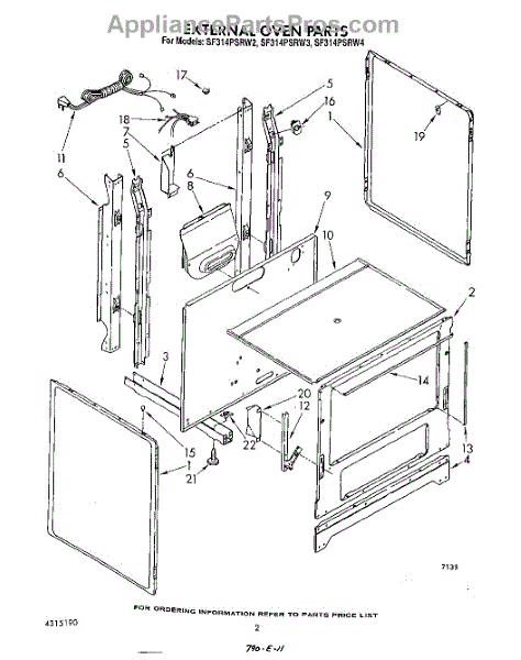 Parts for Whirlpool SF314PSRW3: 02 - External Oven Parts