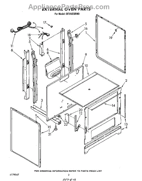 Parts for Whirlpool SF315ESRW0: 02 - External Oven Parts