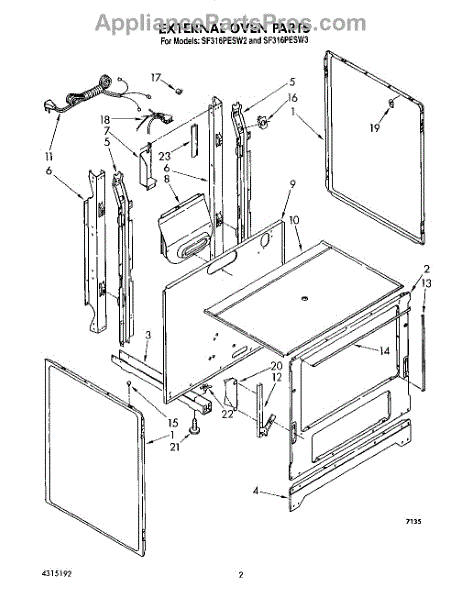 Parts for Whirlpool SF316PESW2: 02 - External Oven Parts