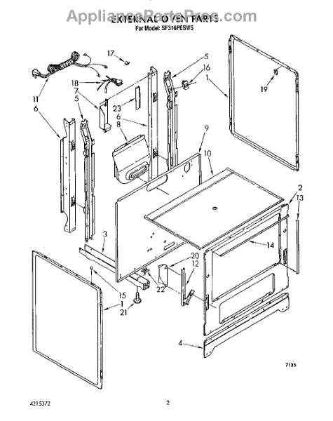 Parts for Whirlpool SF316PESW5: 02 - External Oven Parts