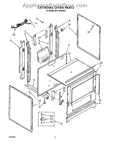 Parts for Whirlpool SF317PEXW0: 02 - External Oven Parts