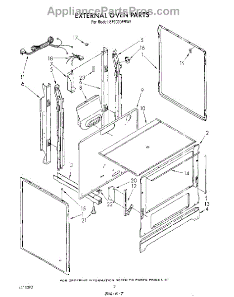 Parts for Whirlpool SF3300ERW5: 02 - External Oven Parts