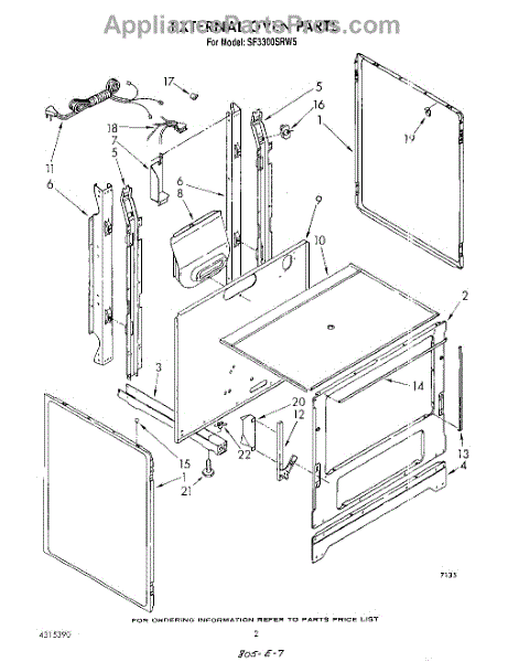 Parts for Whirlpool SF3300SRW5: 02 - External Oven Parts