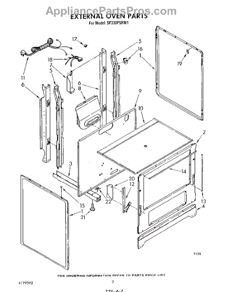 Parts for Whirlpool SF330PSRW1: 02 - External Oven Parts