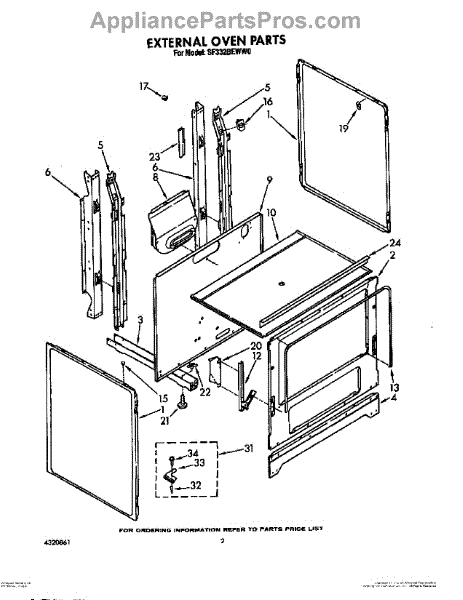 Parts for Whirlpool SF332BEWW0: 02 - External Oven Parts