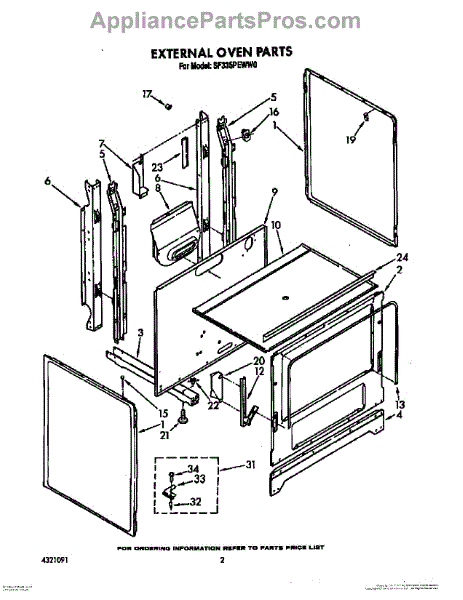 Parts for Whirlpool SF335PEWW0: 02 - External Oven Parts