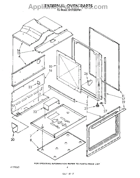 Parts for Whirlpool SF375BEPW1: 03 - External Oven Parts