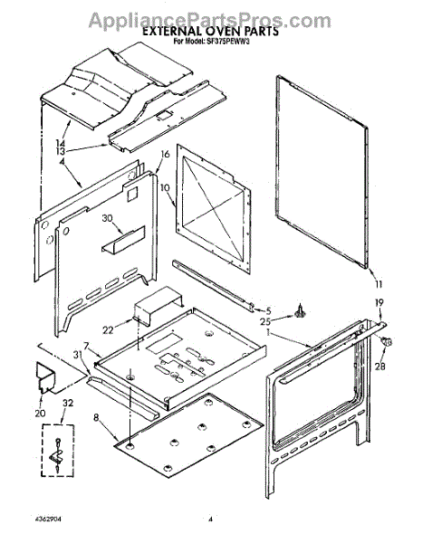 Parts for Whirlpool SF375PEWN3: 04 - External Oven Parts