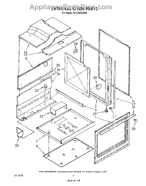 Parts for Whirlpool SF376PEPW0: 03 - External Oven Parts