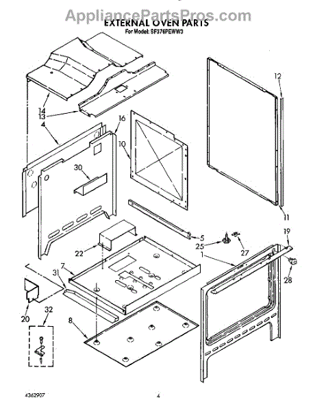 Parts for Whirlpool SF376PEWW3: 03 - External Oven Parts