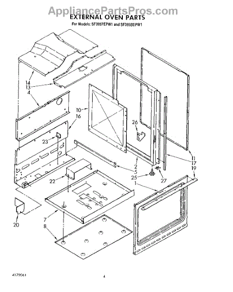 Parts for Whirlpool SF395PEPW1: 03 - External Oven Parts
