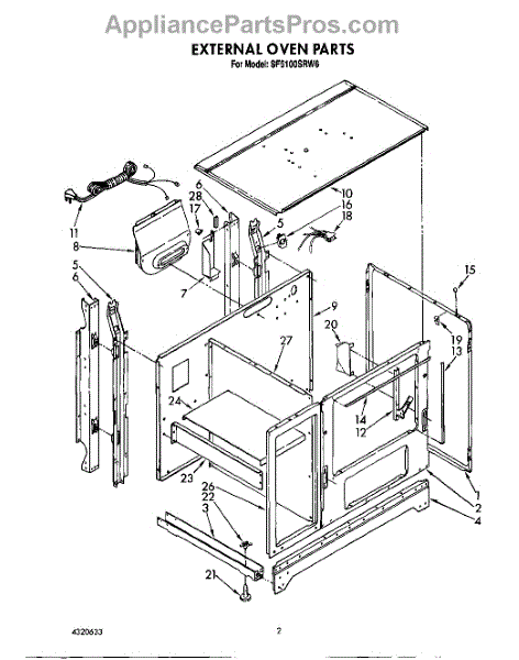 Parts for Whirlpool SF5100SRW6: 02 - External Oven Parts