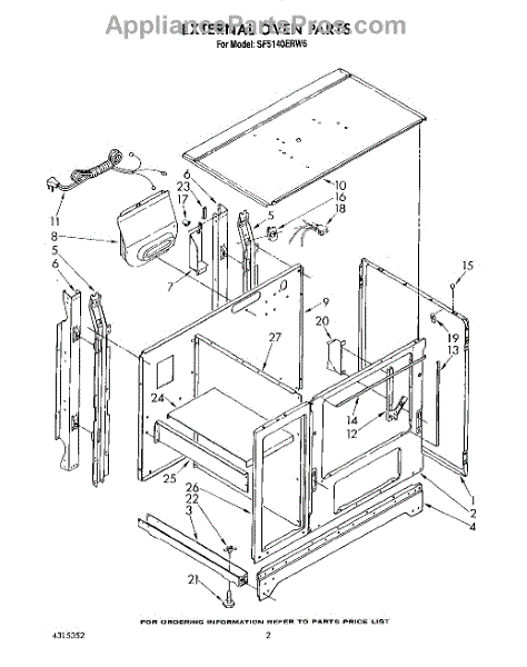 Parts for Whirlpool SF5140ERW6: 02 - External Oven Parts