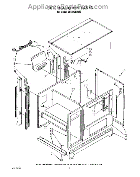 Parts for Whirlpool SF5140ERW7: 02 - External Oven Parts